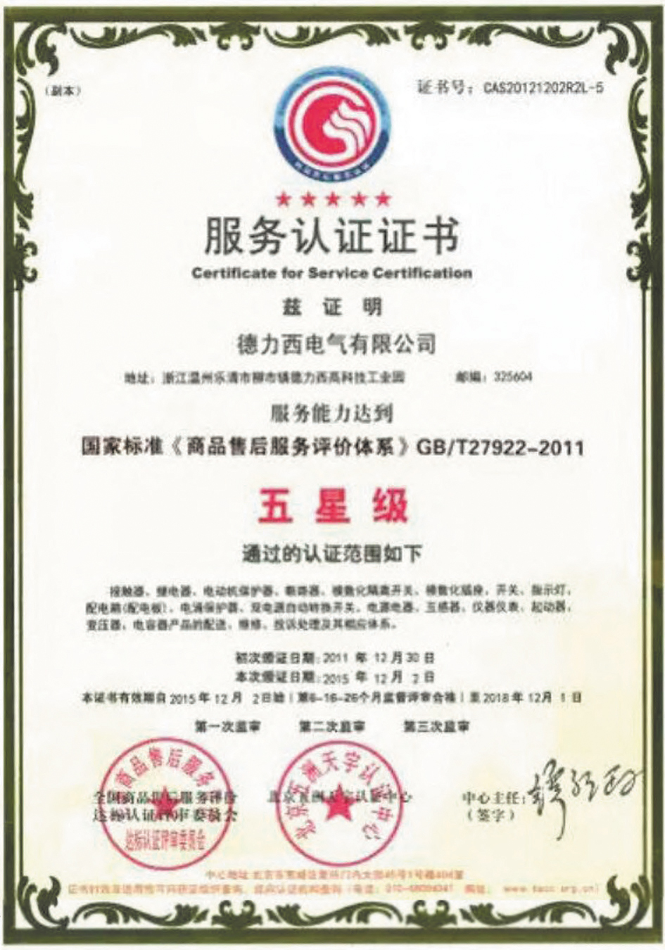 • 德力西電氣榮獲五星質(zhì)量認(rèn)證
